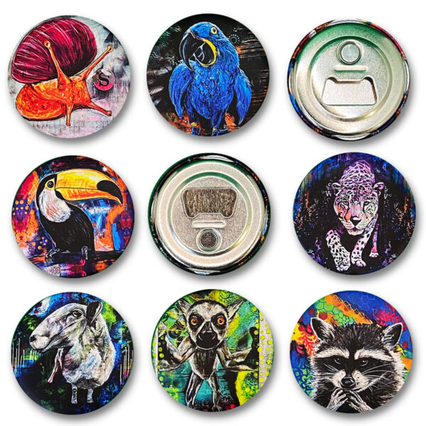 Yeah, mit diesem Öffner geht’s deinen Flaschen stylisch an den Hals! Die stabilen Flaschenöffner mit 56 mm Durchmesser sind mit einem hochwertigen, matten Druck ein echter Eyecatcher. Durch den rückseitig integrierten Magnet haften sie sich mit Leichtigkeit am Kühlschrank fest und sind so immer griffbereit, wenn dein erfrischendes Getränk nach dir ruft.